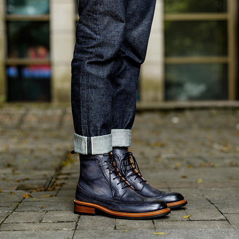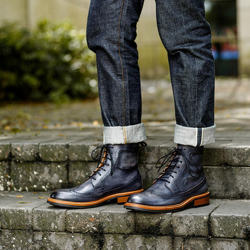รองเท้าบูทเชลซีหนังแท้สำหรับผู้ชาย หนังวัว สไตล์อังกฤษ แบบทางการ ลายสลัก สำหรับใส่กับเสื้อผ้าทางการ