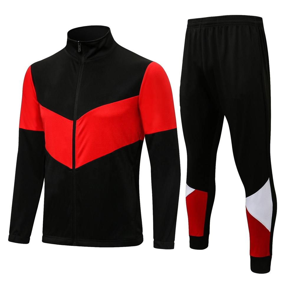ชุดวอร์มผู้ชายลายเชฟรอนแบบสีตัดต่อ แจ็คเก็ตซิปเต็มตัวและกางเกงออกกำลังกายทรงเข้ารูป