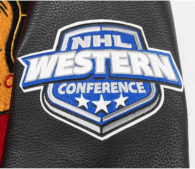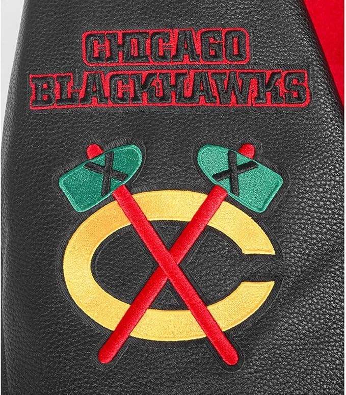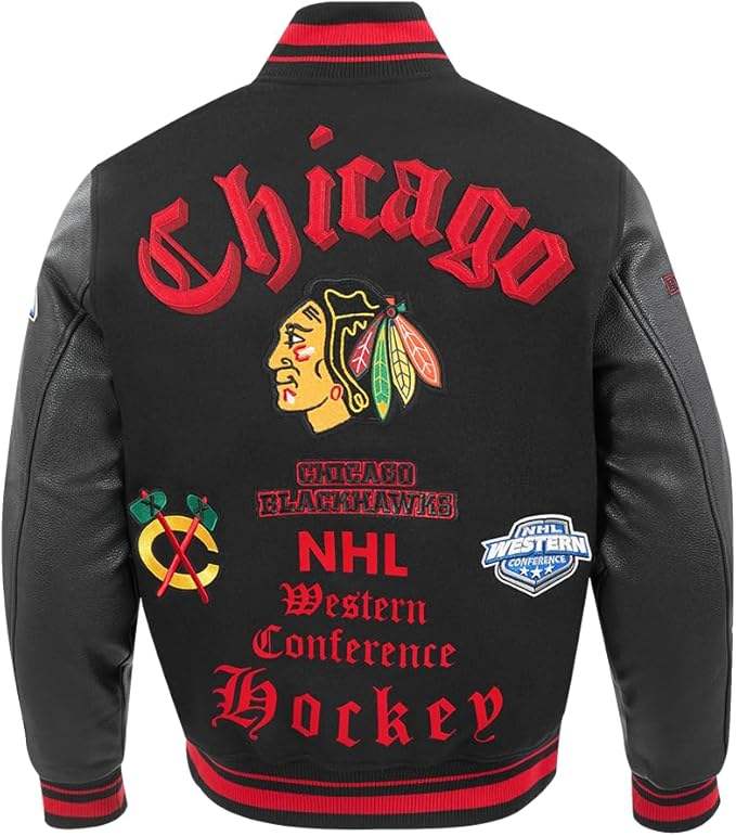 เสื้อแจ็คเก็ตวาร์ซิตี้แบบโอลด์อิงลิชของทีมชิคาโก แบล็คฮอว์กส์ ของผู้ชาย