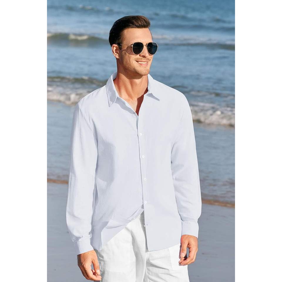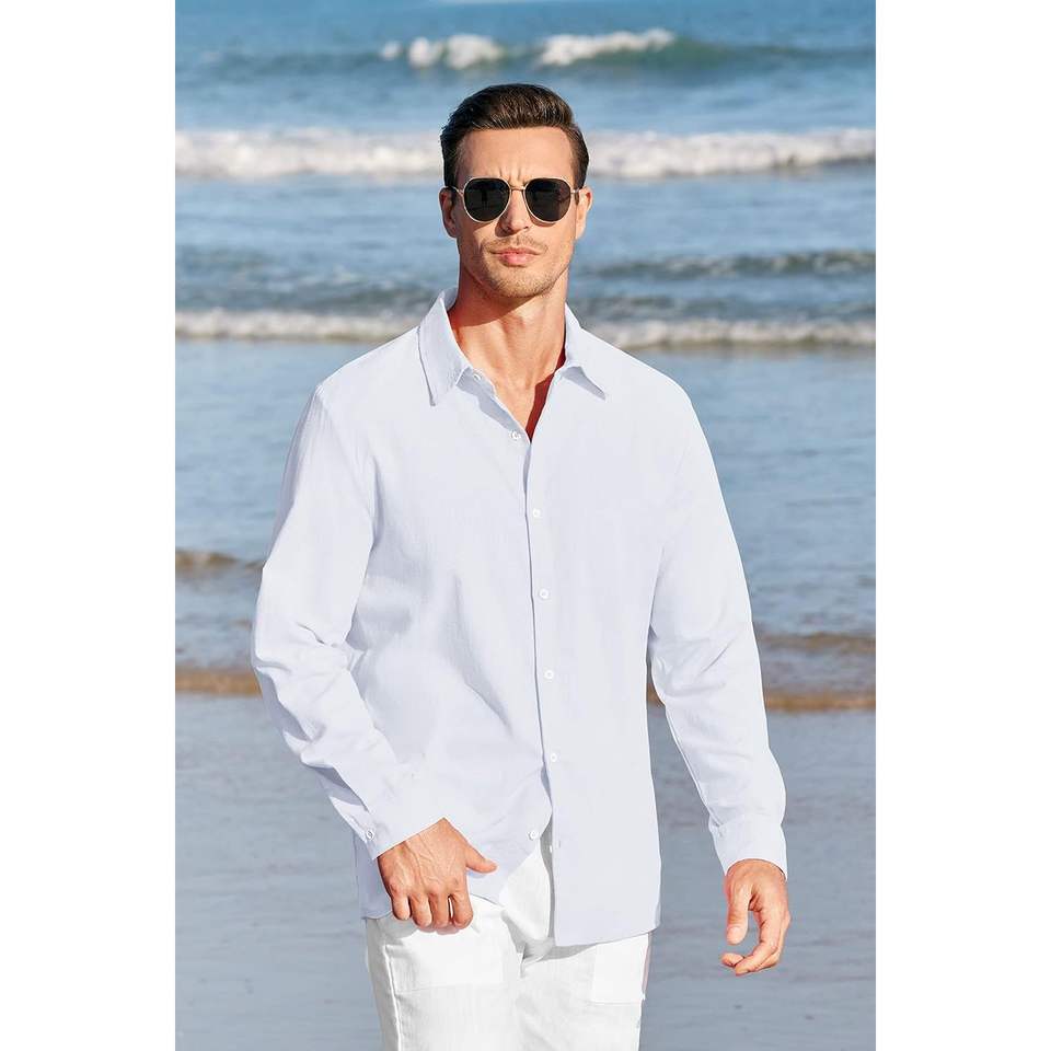 Men's Chinese Casual Shirt 100% Cotton Long Sleeve Lightweight Summer Tops Beach Beach Casual Cotton Summer Lightweight Tops