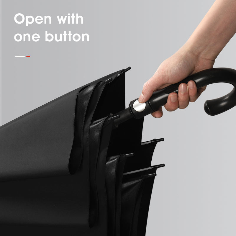 ร่มพับได้ทำจากยางสีดำสำหรับผู้ชายร่มไนลอนทรงตรงได้แบบคลาสสิก8-Bone สำหรับธุรกิจ