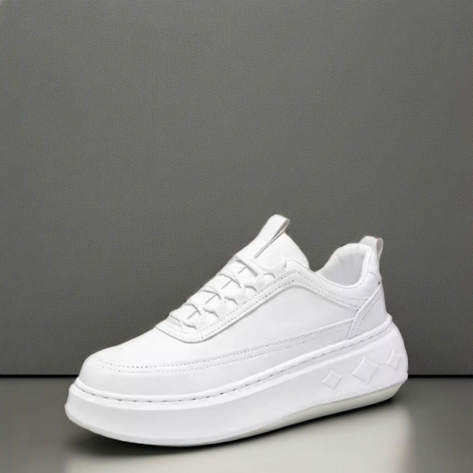 รองเท้ากีฬาลำลองสำหรับผู้ชายคลาสสิกทุกฤดูรองเท้าน้ำหนักเบาหนังกันลื่นพื้นรองเท้าพีวีซีระบายอากาศตาข่ายเพิ่มความสูงข้อเท้า