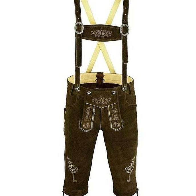 กางเกงหนังแบบดั้งเดิม ความยาวระดับเข่า พร้อมสายเอี๊ยม