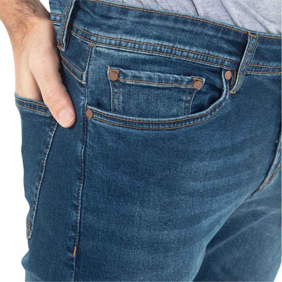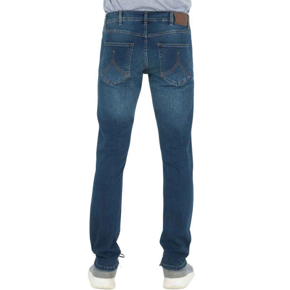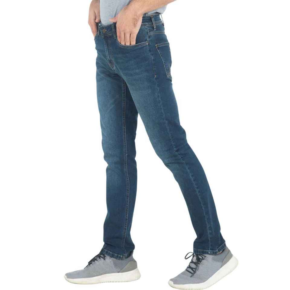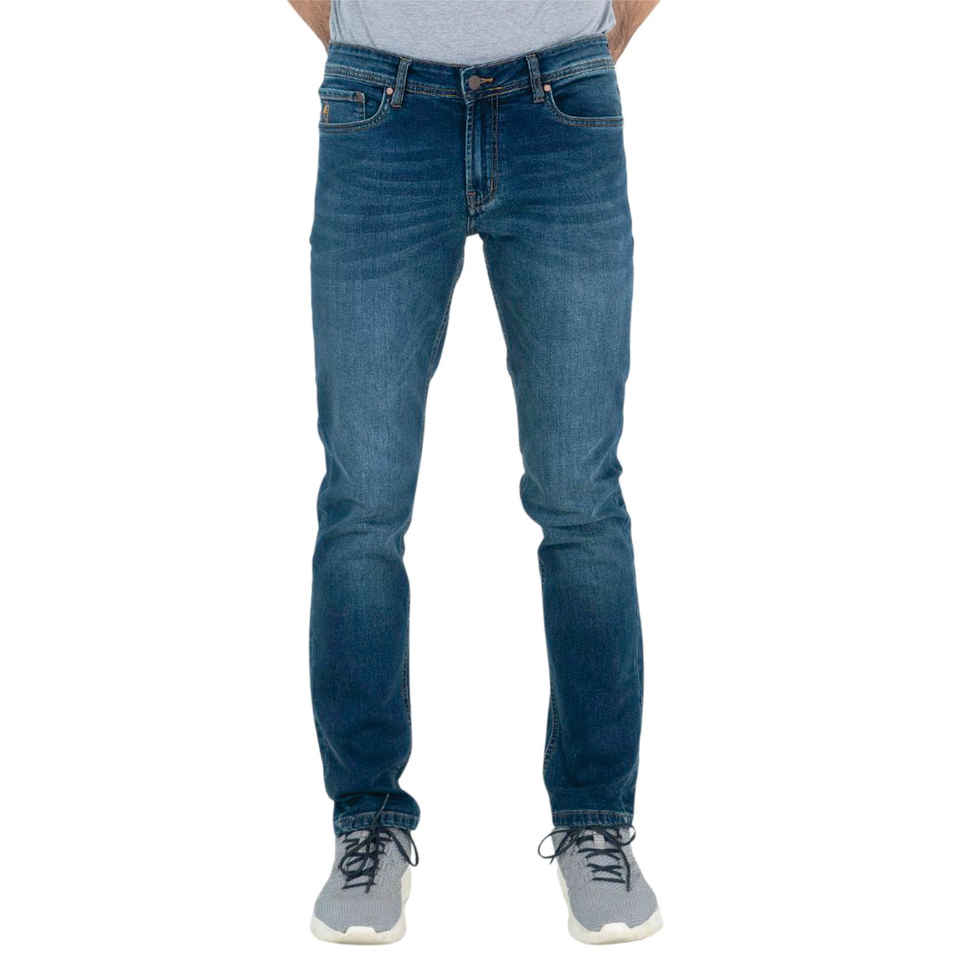 กางเกงยีนส์ผ้าฝ้ายสีฟ้าคลาสสิกสำหรับผู้ชายดีไซน์ลำลองทรงสลิมฟิตพร้อมความหนาของผ้าใบน้ำหนักเบาแบบปกติพอดีตัว