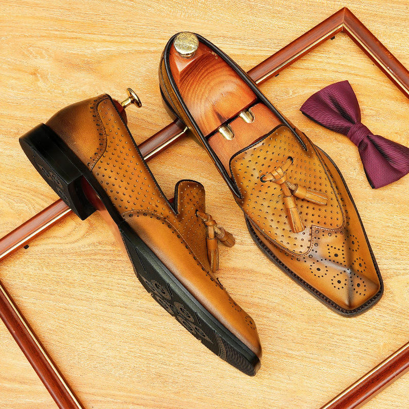 วัสดุหนังแท้: รับประกันความทนทานและสัมผัสที่หรูหรา ทำให้รองเท้าเหมาะสำหรับการใช้งานในระยะยาวในสภาพแวดล้อมทางการ