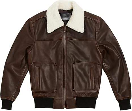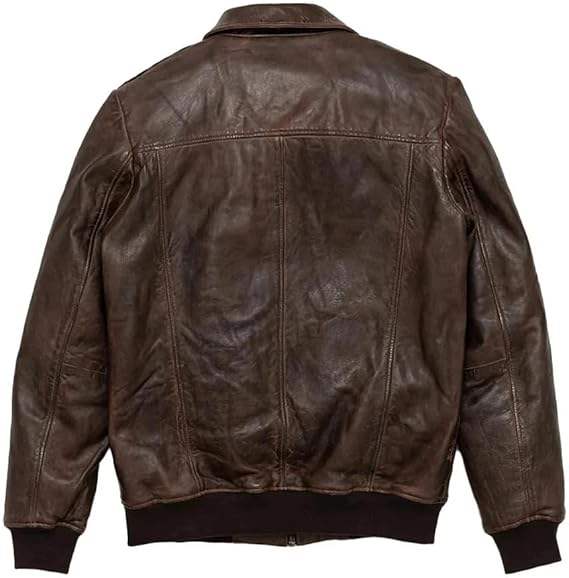แจ็คเก็ตนักบินหนังวินเทจสีน้ำตาลคลาสสิกสำหรับผู้ชาย