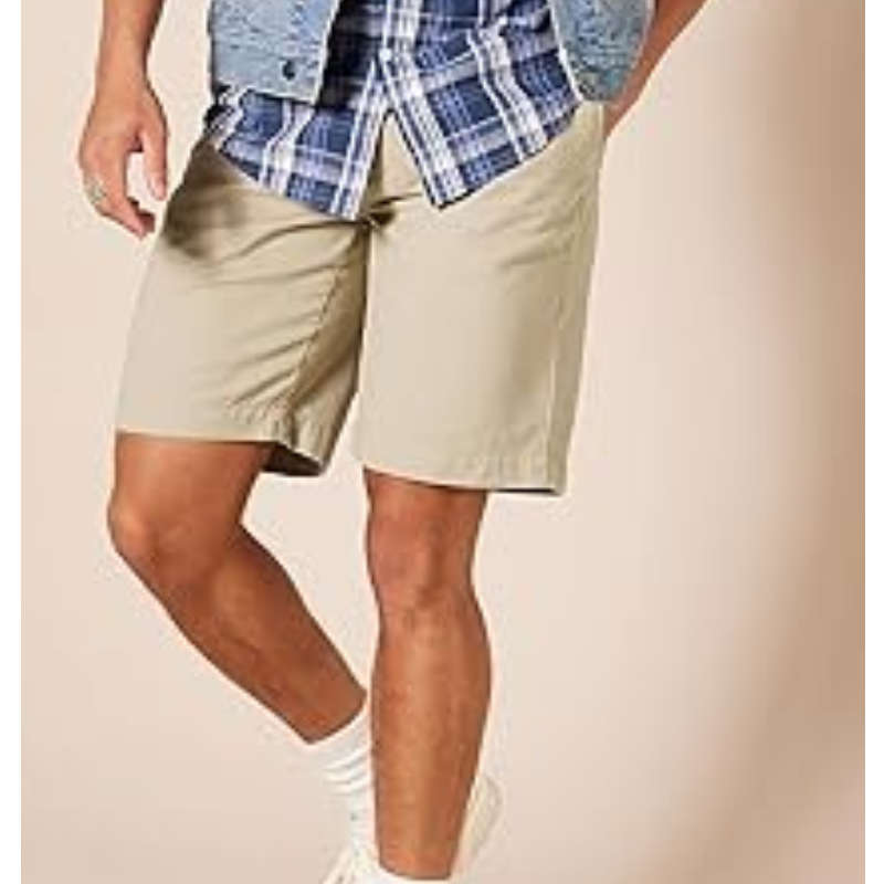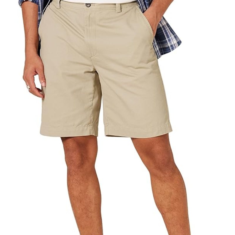 กางเกงขาสั้นชิโน่ทรงคลาสสิกสำหรับผู้ชาย ความยาว 9 นิ้ว ด้านหน้าเรียบ ผ้าฝ้ายใส่สบายสำหรับสวมใส่ในชีวิตประจำวัน