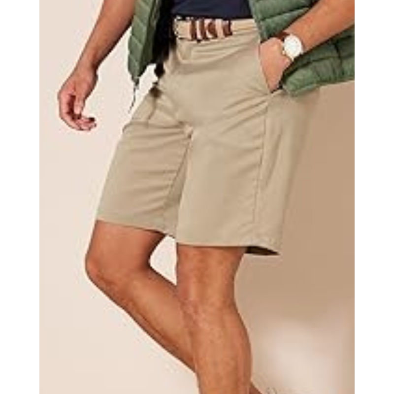 กางเกงกอล์ฟขาสั้นผู้ชายทรงคลาสสิก ยืดหยุ่น ระบายอากาศได้ดี น้ำหนักเบา (โพลีเอสเตอร์ผสมอีลาสเทน) สำหรับใส่ลำลอง ทำงาน และเดินทาง