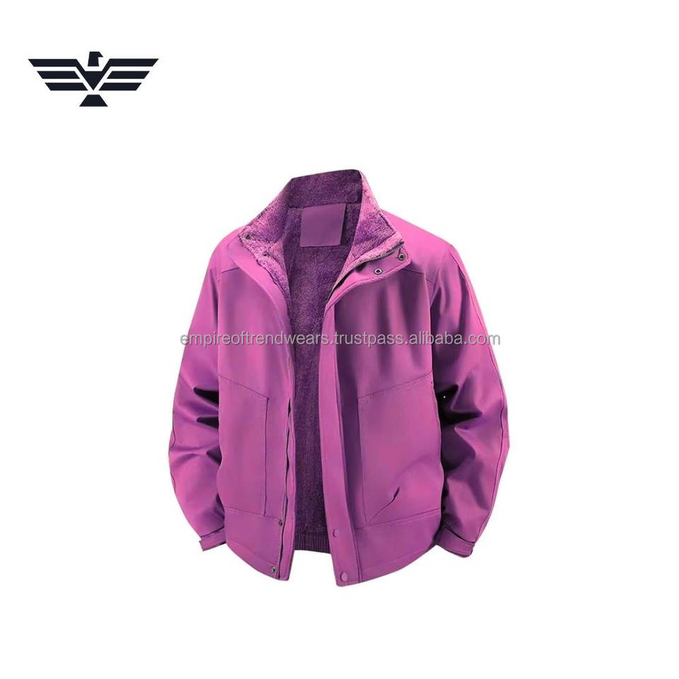 เสื้อแจ็คเก็ตผู้ชายแบบคลาสสิก ลายเรียบ บุขนแกะ ตกแต่งด้วยการปักแบบกำหนดเอง กระดุมแบบปกปิด ระบายอากาศได้ดี อุ่นสบายสำหรับฤดูหนาว