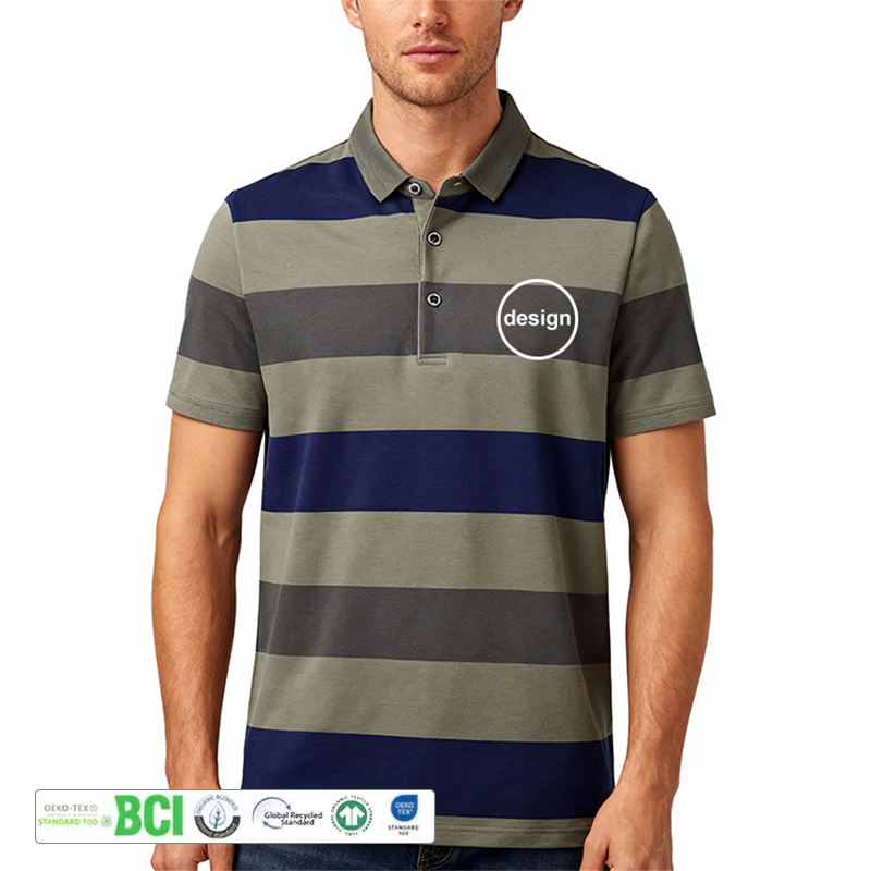 เสื้อยืดผู้ชายลายทางคลาสสิก สีพื้น ผ้าฝ้ายผสมสแปนเด็กซ์/โพลีเอสเตอร์ แขนสั้น สไตล์วินเทจ มีกระเป๋า รับสกรีนโลโก้ตามสั่ง สีตามสั่ง รับผลิตแบบ OEM