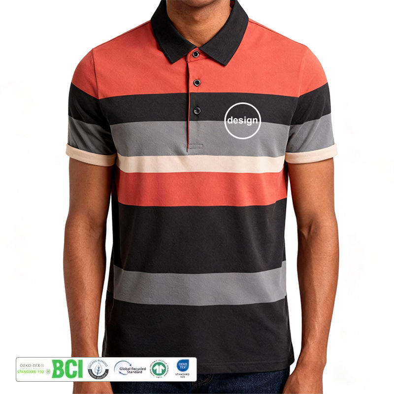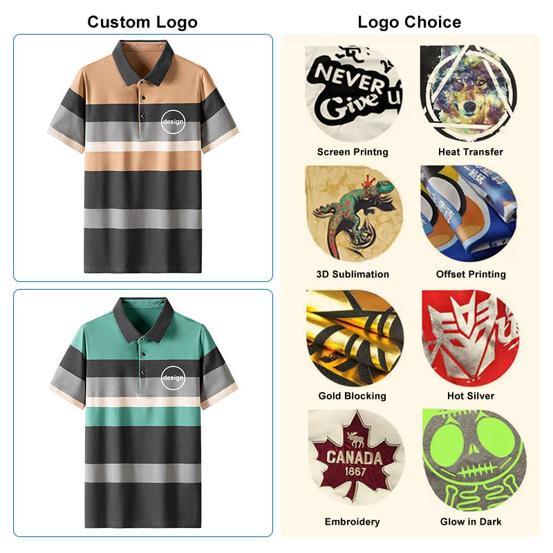 เสื้อยืดผู้ชายลายทางคลาสสิก สีพื้น ผ้าฝ้ายผสมสแปนเด็กซ์/โพลีเอสเตอร์ แขนสั้น สไตล์วินเทจ มีกระเป๋า รับสกรีนโลโก้ตามสั่ง สีตามสั่ง รับผลิตแบบ OEM