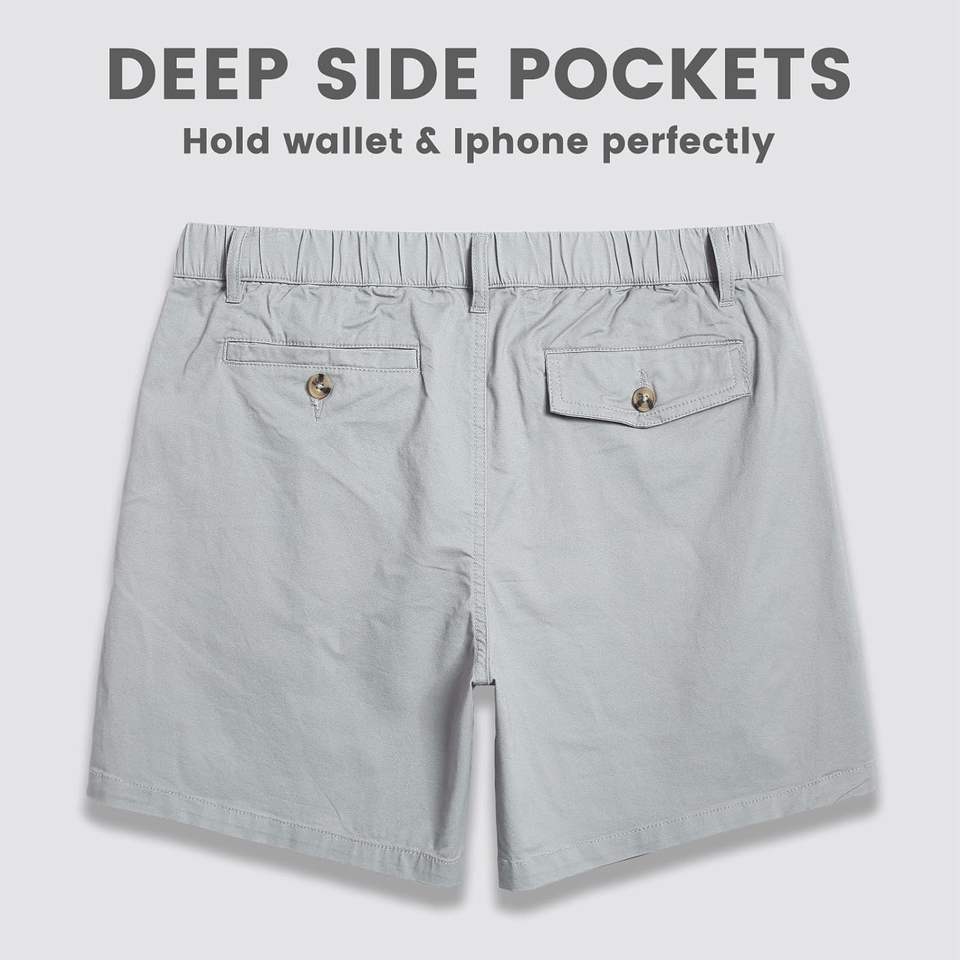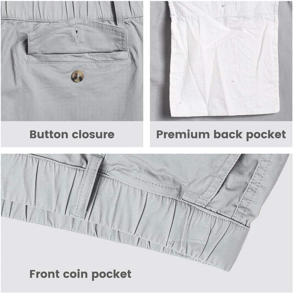 กางเกงขาสั้นผ้าฝ้ายแบบคลาสสิกสำหรับผู้ชายเอวยางยืดมีกระเป๋าหลายใบใส่ประจำวันชุดเดินฤดูร้อน