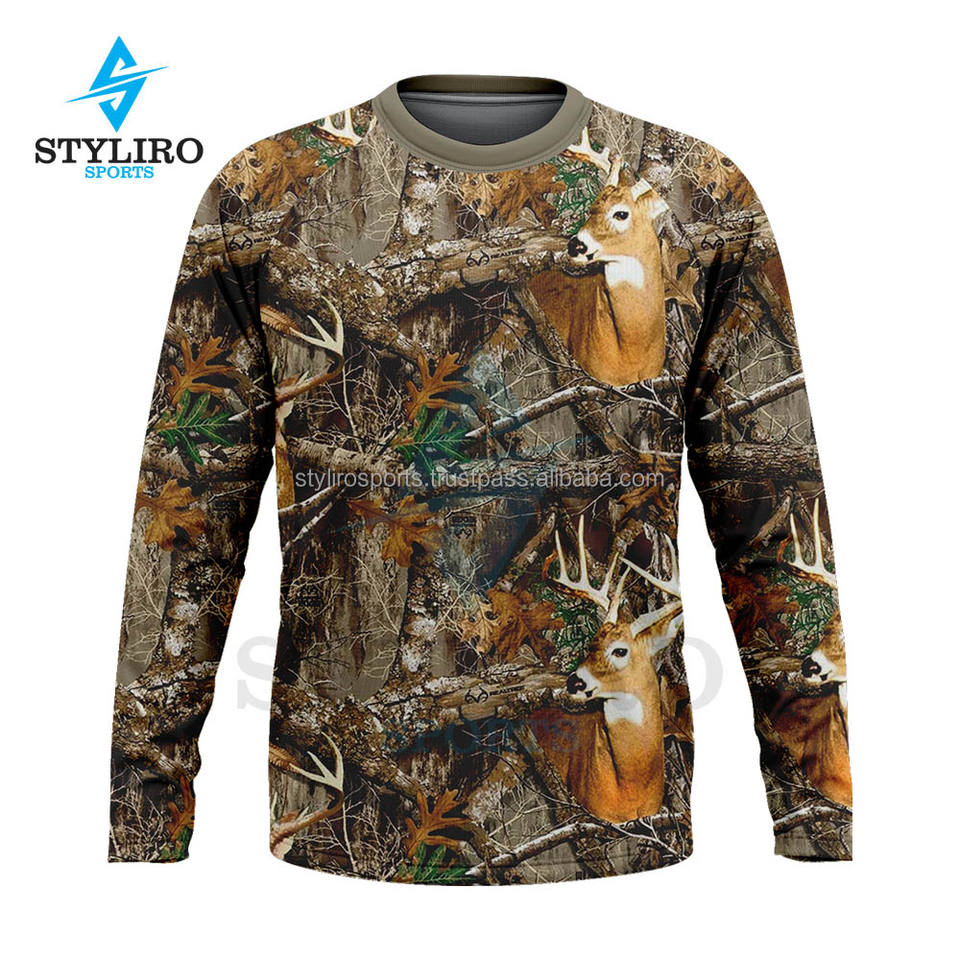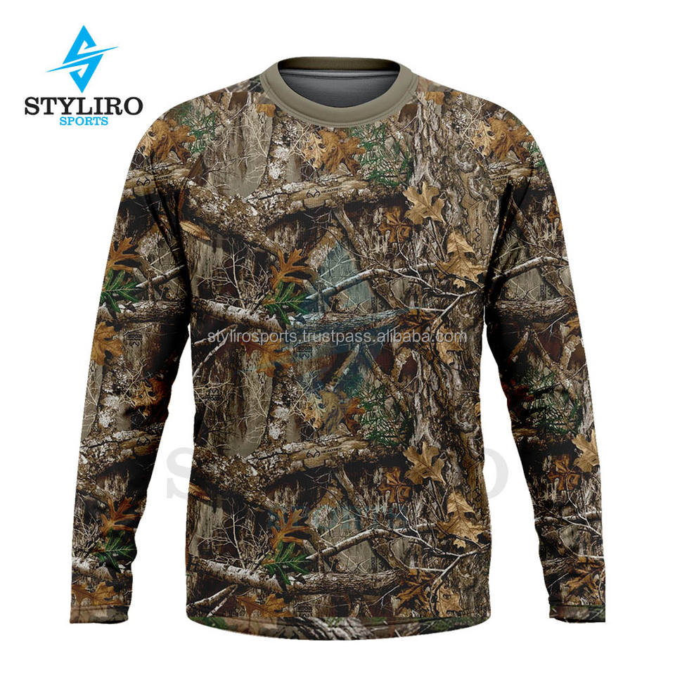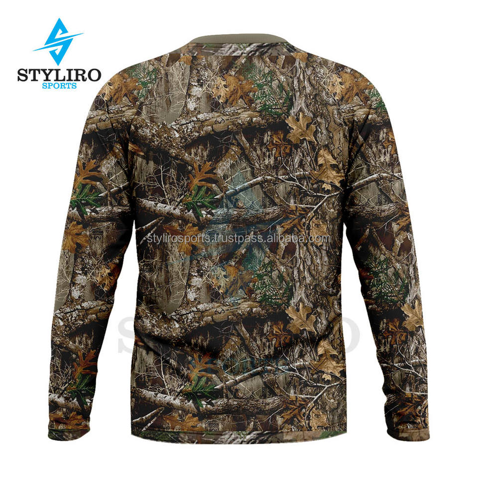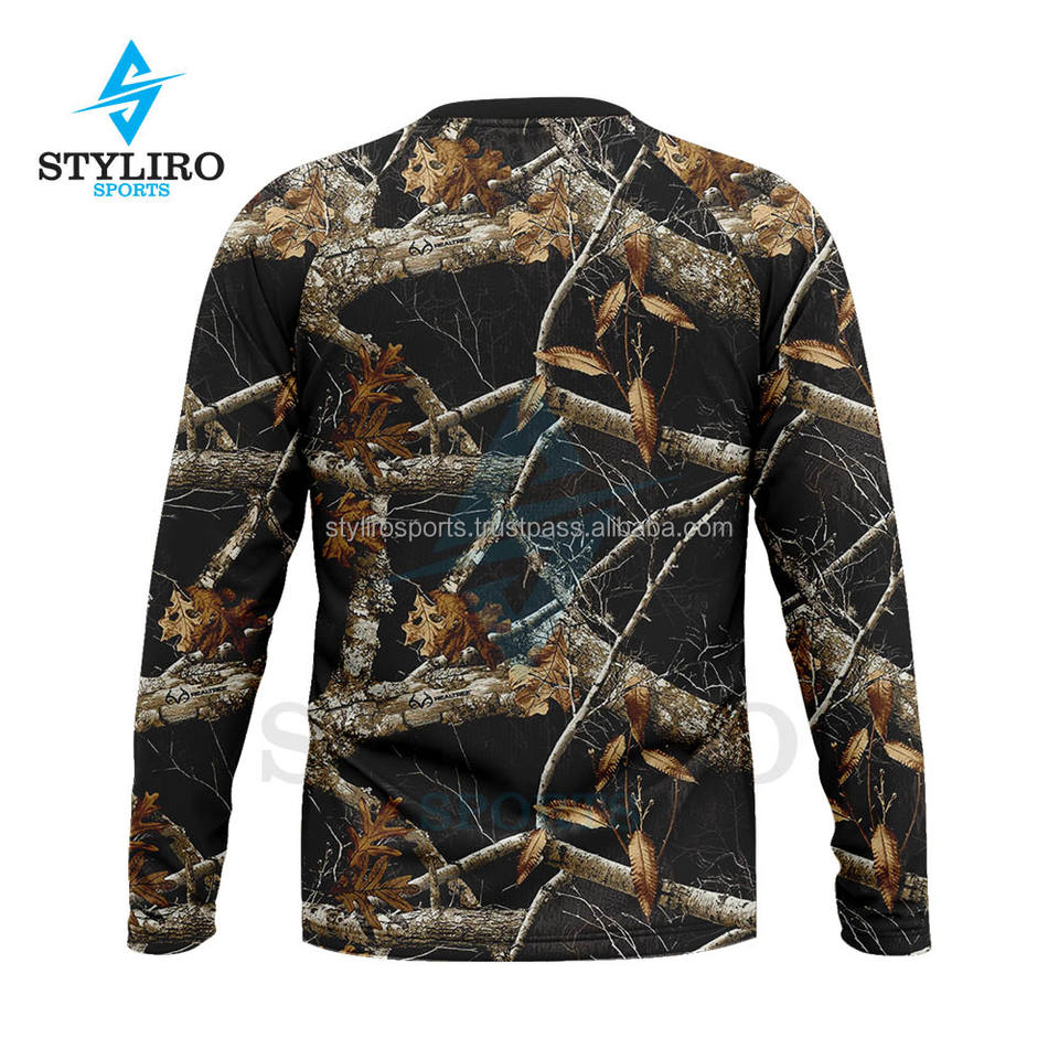 เสื้อยืดลายพรางต้นไม้สำหรับผู้ชาย พิมพ์ลายดิจิทัล แขนยาว เป็นมิตรกับสิ่งแวดล้อม