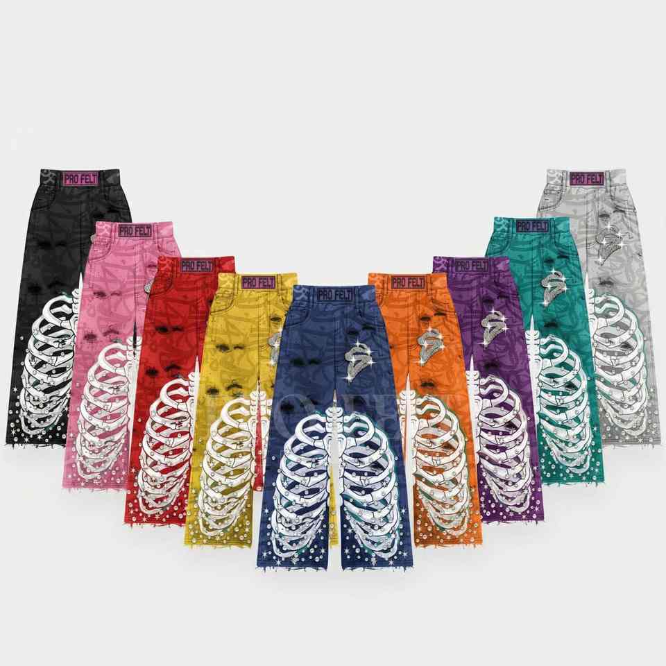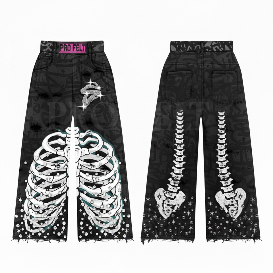 กางเกงวอร์มผ้าแคนวาสพิมพ์ลายโครงกระดูกสำหรับผู้ชาย ทรงโอเวอร์ไซส์ ดีไซน์ลายกระดูกสันหลัง สำหรับสตรีทแวร์สุดเทรนดี้