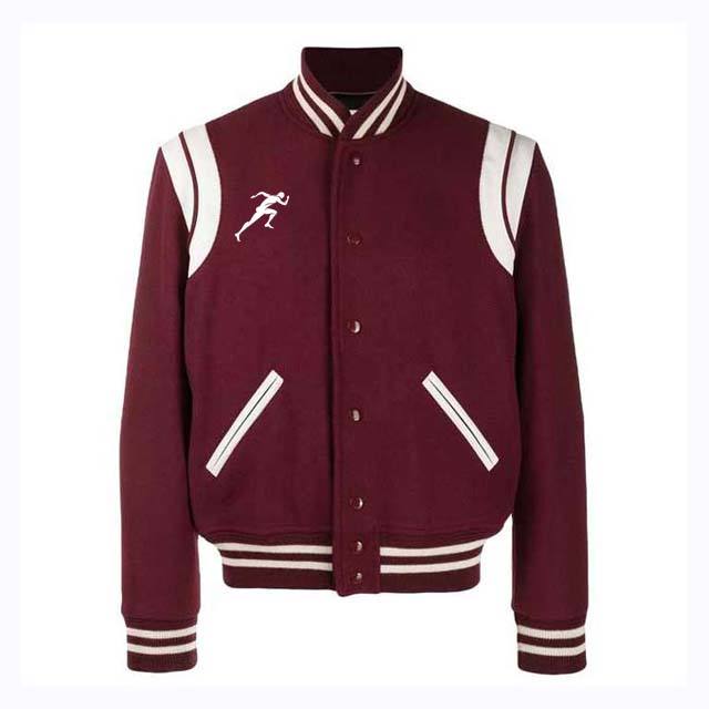 เสื้อแจ็กเก็ตเบสบอลสไตล์ไฮสตรีทสำหรับผู้ชายเสื้อแจ็คเก็ตเบสบอลมหาวิทยาลัยผ้าขนสัตว์แขนยาวมีกระเป๋า