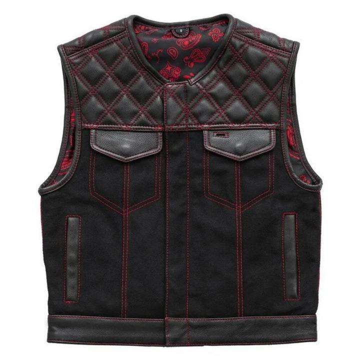 เสื้อกั๊กคลับผู้ชาย ผ้ายีนส์และหนัง สำหรับขี่มอเตอร์ไซค์ พร้อมบุเพชรและกระเป๋าใส่ปืน ชุดกีฬาสำหรับผู้ใหญ่