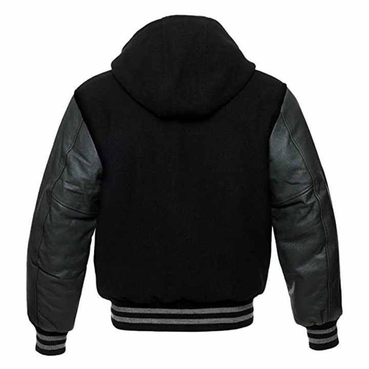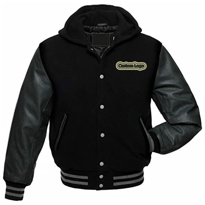 แจ็กเก็ตเบสบอลมหาวิทยาลัยสำหรับผู้ชาย, แจ็คเก็ตหนังแท้ขนตัวหนังสือปกตั้งสไตล์สตรีทไฮสตรีทสำหรับฤดูหนาว