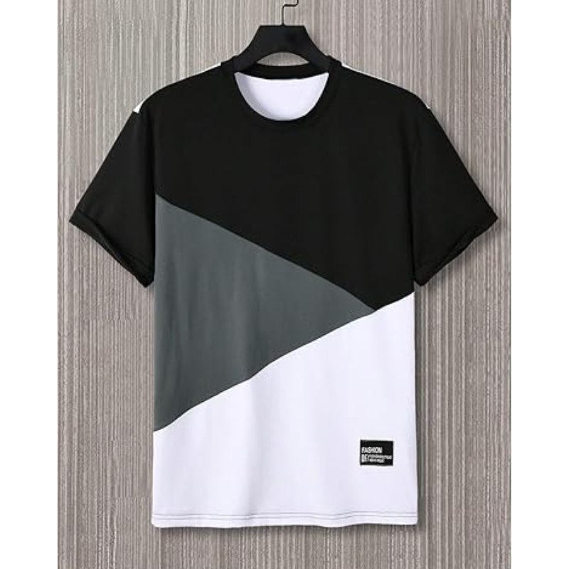เสื้อยืดผู้ชายลายกราฟิกบล็อกสี แขนสั้น คอกลม สไตล์ลำลอง สำหรับฤดูร้อน สตรีทแวร์