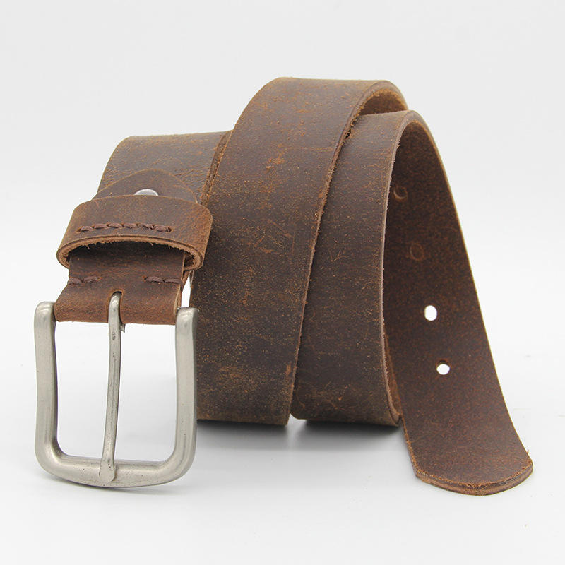 เข็มขัดหนังวัวแท้สำหรับผู้ชายหนังวัวสีน้ำตาลสวมใส่สบายพร้อมกระดุมทองเหลืองแข็งดีไซน์โดดเด่นจากปากีสถาน