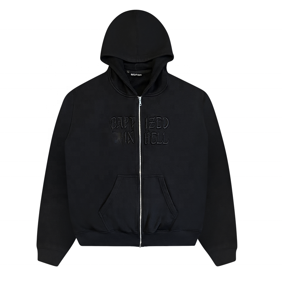 เสื้อฮู้ดซิปเต็มตัวสำหรับผู้ชาย, เสื้อฮู้ดเทอร์รี่ระบายอากาศลายนูน3D โอเวอร์ไซส์ใส่สบายออกแบบโลโก้ได้ตามต้องการ