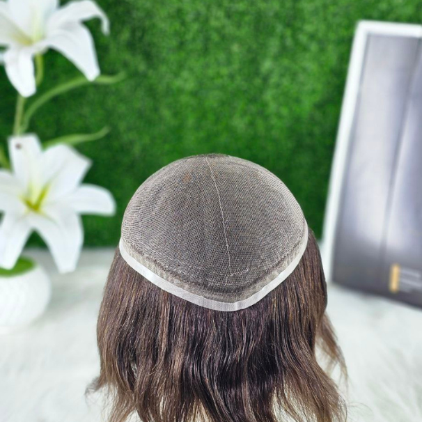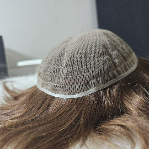 วิกผมเรสมี่แบบตรงสำหรับผู้ชายวิกผมลูกไม้แบบฝรั่งเศสแบบนุ่มใสระบบเปลี่ยนจากอินเดีย