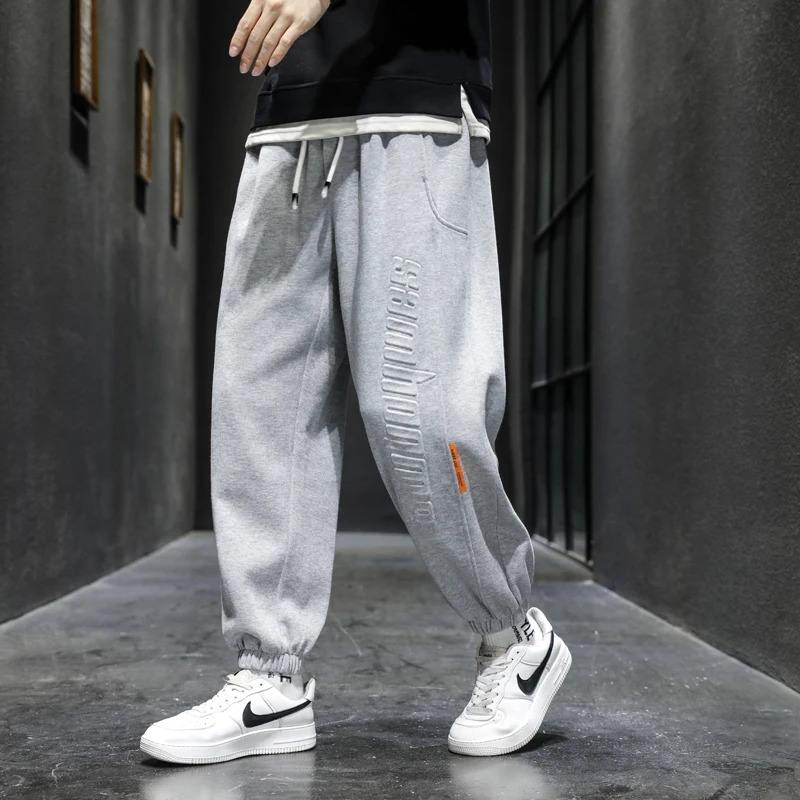 กางเกงสเวตเตอร์เอวสูงผ้าแคนวาสสำหรับผู้ชายใส่ได้ทุกวันมีสายรัดเอวยางยืดและมีกระเป๋ามีซิปขนาด XL สวมใส่สบาย