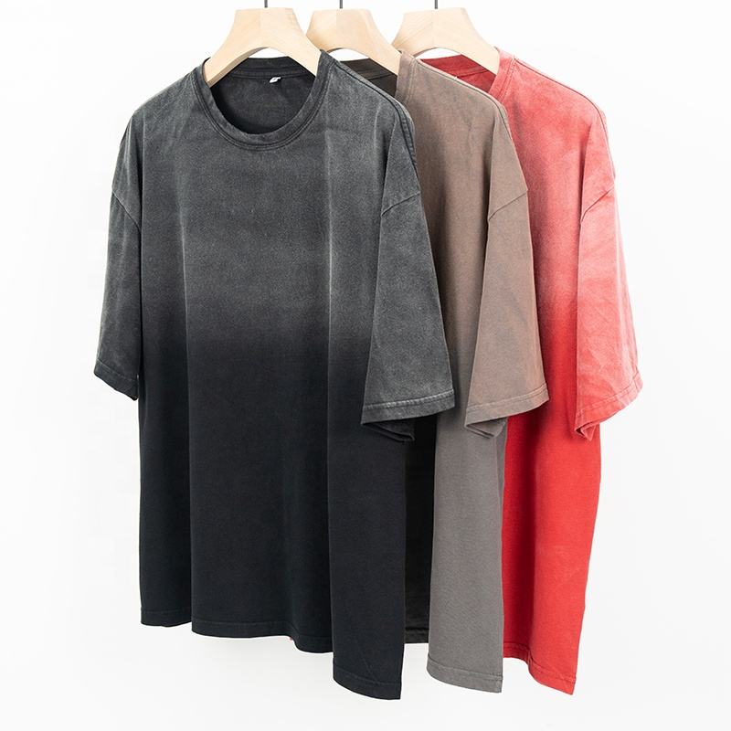 เสื้อยืดผ้าคอตตอนซีดจางสำหรับผู้ชายใส่สบายไซส์ใหญ่พิเศษเสื้อผ้าถักตามสั่ง