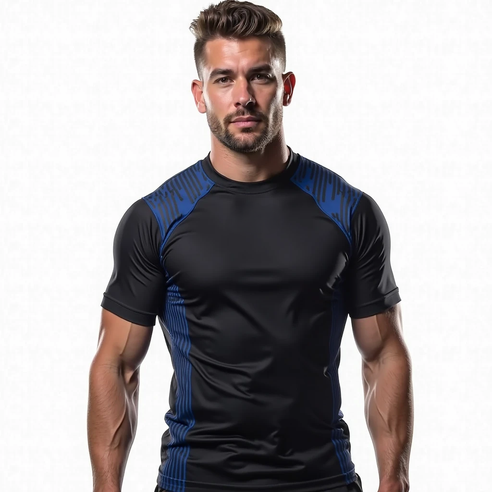 เสื้อรัดกล้ามเนื้อผู้ชาย ระบายอากาศได้ดี ดีไซน์แรงบันดาลใจจากโลหะ เสริมความแข็งแรง ยืดได้สี่ทิศทาง ป้องกันแสงแดด UPF50+ แขนสั้น สำหรับเล่นกีฬา ลาย Heavy-Metal โดดเด่น