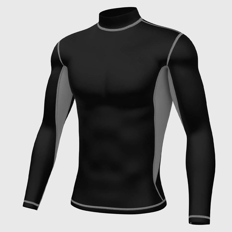 เสื้อชั้นในออกกำลังกายแบบรัดรูปสำหรับผู้ชาย เสื้อกีฬาแขนยาวสีดำสำหรับเล่นรักบี้ ชุดกีฬาสำหรับคนท้อง