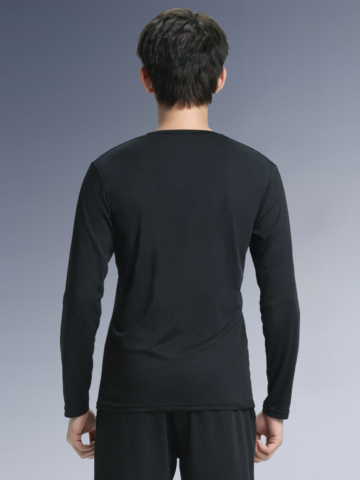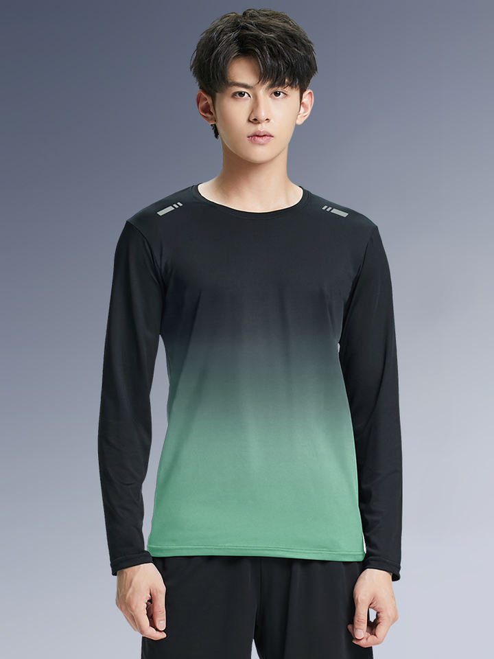 เสื้อยืดคอกลมแขนยาวสำหรับผู้ชาย, เสื้อยืดแห้งเร็วดูดซับเหงื่อสำหรับฝึกออกกำลังกายดีไซน์โลโก้ด้านหน้า
