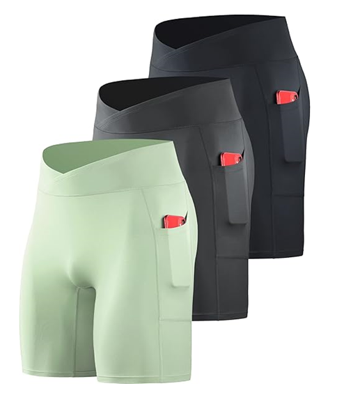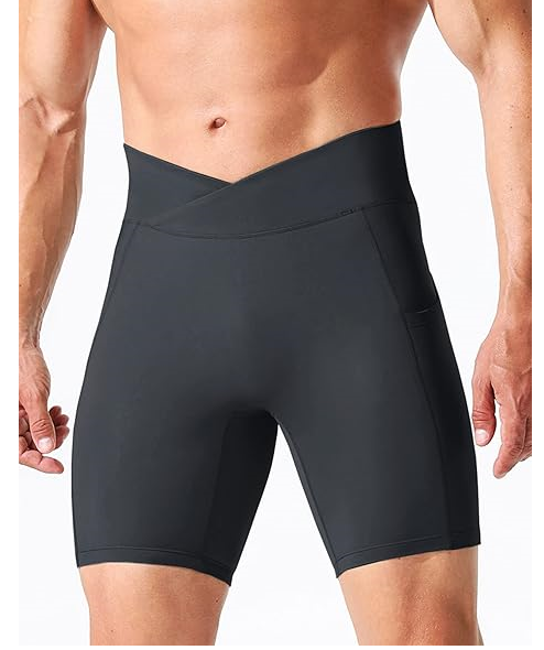 กางเกงขาสั้นรัดรูปผู้ชายมีกระเป๋า แห้งเร็ว เหมาะสำหรับโยคะและวิ่ง