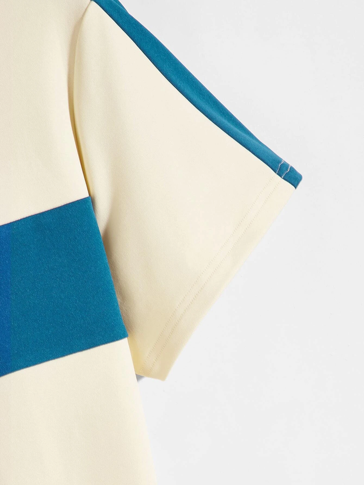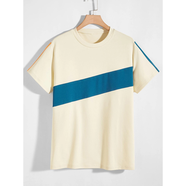 เสื้อยืดคอกลมแขนสั้นสำหรับผู้ชาย,เสื้อยืดสไตล์สตรีทสำหรับผู้ชายสีตัดกัน