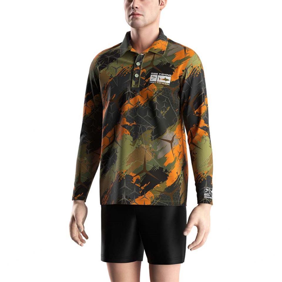 เสื้อโปโลผู้ชายแบบระบายความร้อน แห้งเร็ว กันลม กันน้ำ ระบายอากาศได้ดี เหมาะสำหรับกอล์ฟ เดินป่า ตกปลา ลายพราง มีไซส์พลัสไซส์ให้เลือก