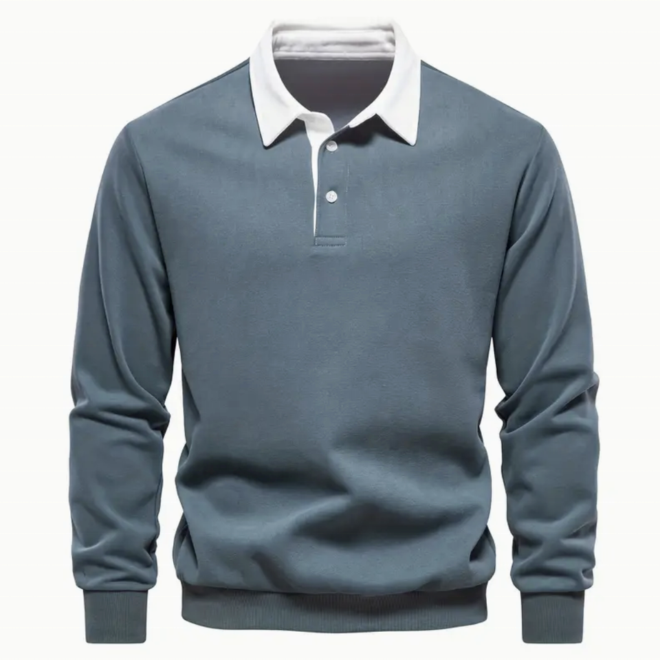 เสื้อโปโลแขนยาวสำหรับผู้ชาย, ผ้าฝ้ายผสมแบบสวมหัวสไตล์ย้อนยุคลำลองปักลายสีพื้นขนาดพลัสไซส์ระบายอากาศสำหรับฤดูใบไม้ผลิ Fa