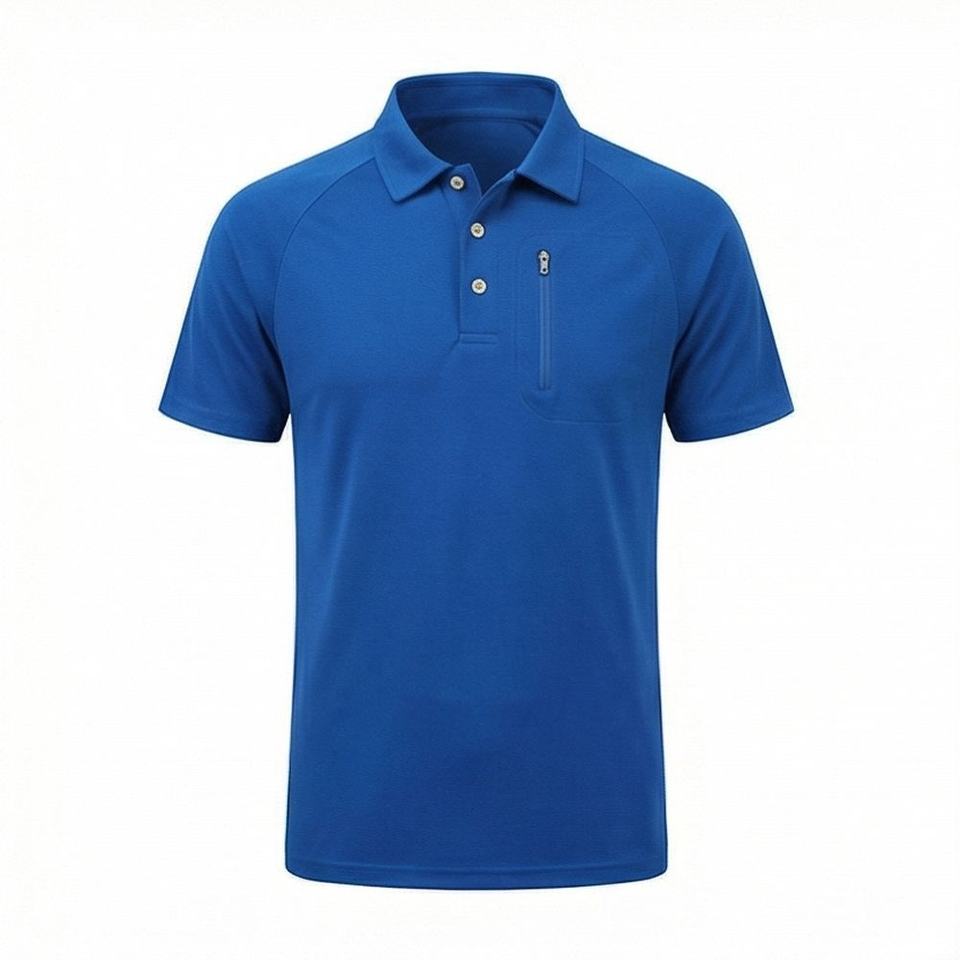 เสื้อโปโลผู้ชายผ้าฝ้ายระบายอากาศดี แขนสั้น เรียบง่าย เหมาะสำหรับกอล์ฟ กิจกรรมกลางแจ้ง สวมใส่สบาย มีกระเป๋าเสื้อ สีตามสั่ง