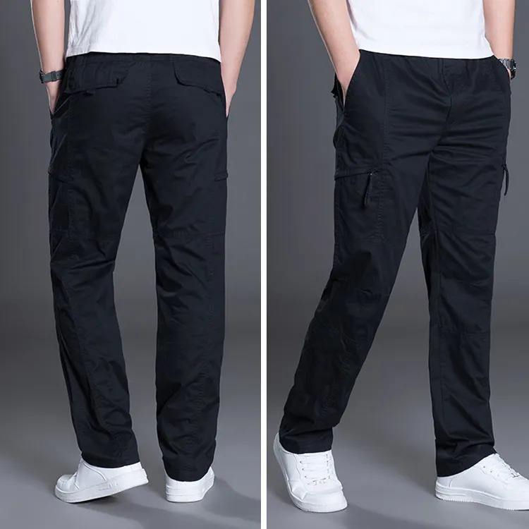 กางเกงคาร์โก้ผู้ชาย ผ้าฝ้าย เอวกลาง ดีไซน์หลายกระเป๋า ขายดี กางเกงขายาวสำหรับเดินป่า กางเกงคาร์โก้ขายส่ง