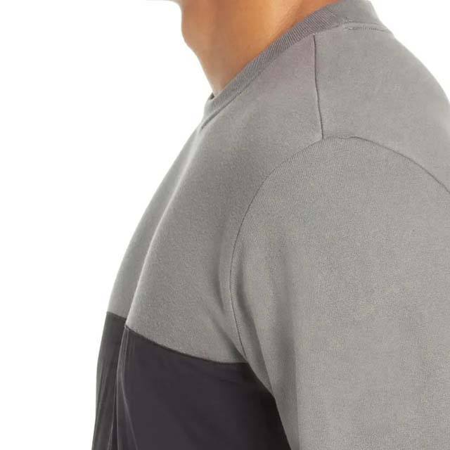 เสื้อสเวตเตอร์สวมหัวคอกลมของผู้ชายเสื้อมีฮู้ด2สีตัดกันแฟชั่น