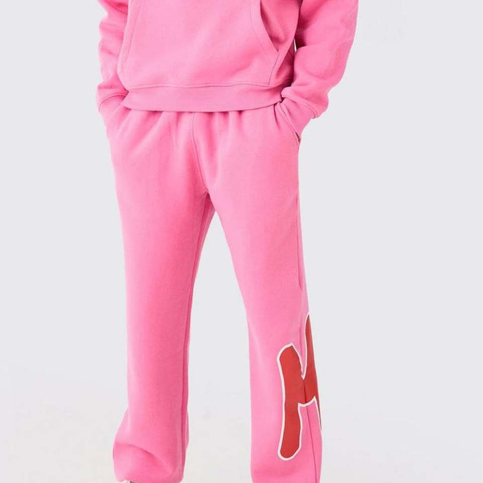 ชุดออกกำลังกายผู้ชายผ้าฝ้ายแบบกำหนดเอง พร้อมเสื้อฮู้ดสีชมพูและกางเกงวอร์ม กางเกงขาสั้นดีไซน์เนอร์เพื่อความสบายในการสวมใส่