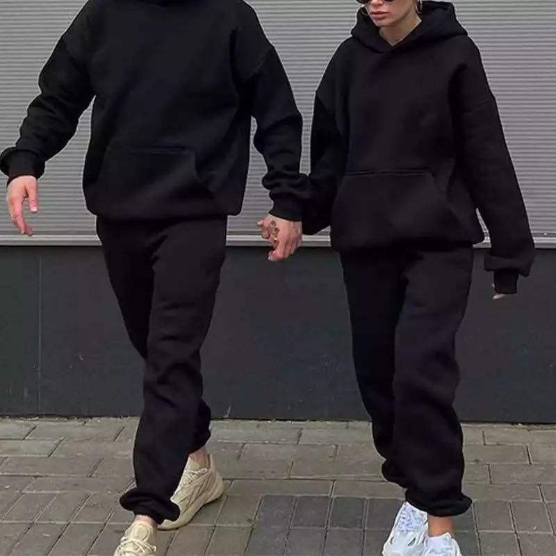 ชุดวอร์มผ้าฝ้ายถักแบบมีฮู้ดสำหรับผู้ชายชุดวอร์มสองชิ้นแนวสตรีทแฟชั่นสีล้วนพิมพ์ลายอนิเมะพิมพ์ลายตัวอักษรโลโก้ด้านหน้า