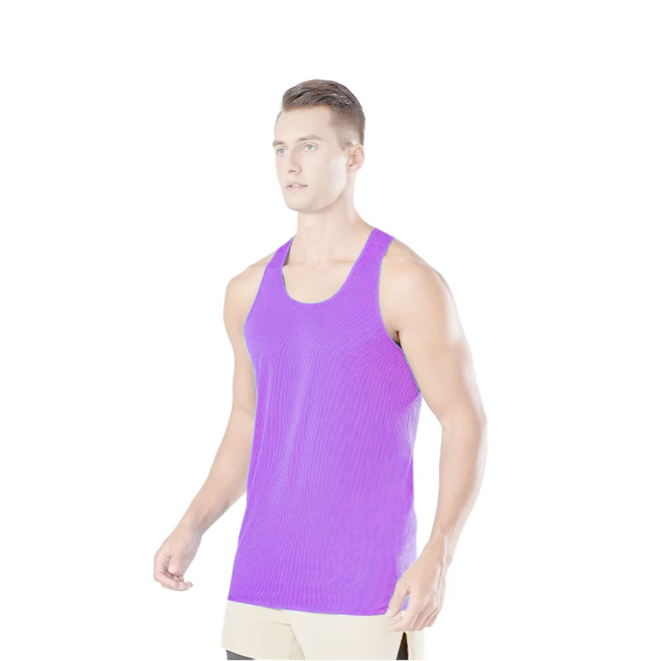 เสื้อกล้ามแขนกุดสำหรับผู้ชายผ้าคอตตอนแบบตาข่ายแห้งเร็วชุดใส่เล่นฟิตเนสยิมกระดุมจากผู้ผลิตเชือกถักตกแต่งรู