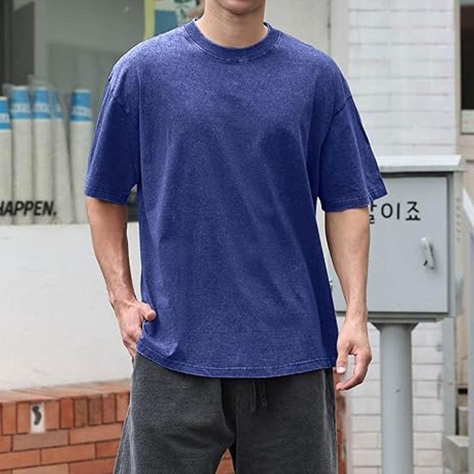 Men's Cotton T-Shirts Oversized Unisex Short Sleeves Casual Loose Washed Solid Basic Tee Tops Streetwear Fashion Comfortable