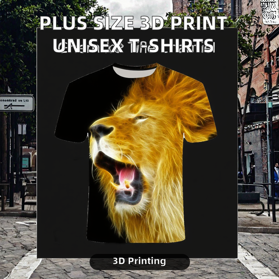เสื้อยืดผู้ชายลายพิมพ์ 3 มิติ ลายเสือ สิงโต และเสือดาว สไตล์ลำลอง ใส่สบาย ระบายอากาศได้ดี ผ้าถักน้ำหนัก 180 กรัม พร้อมลวดลาย