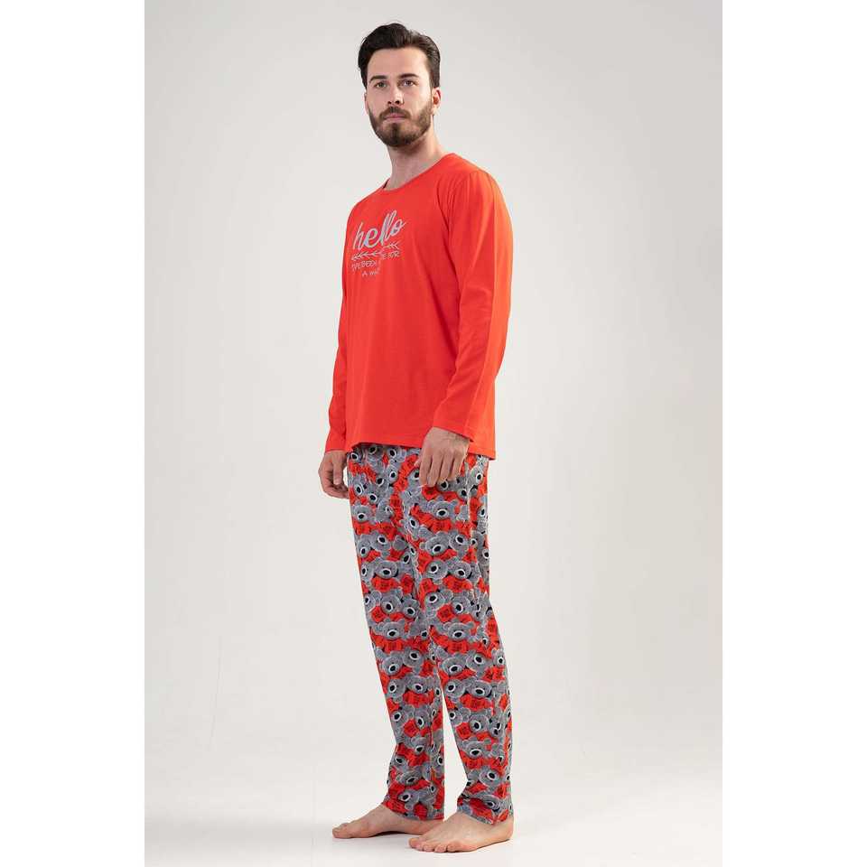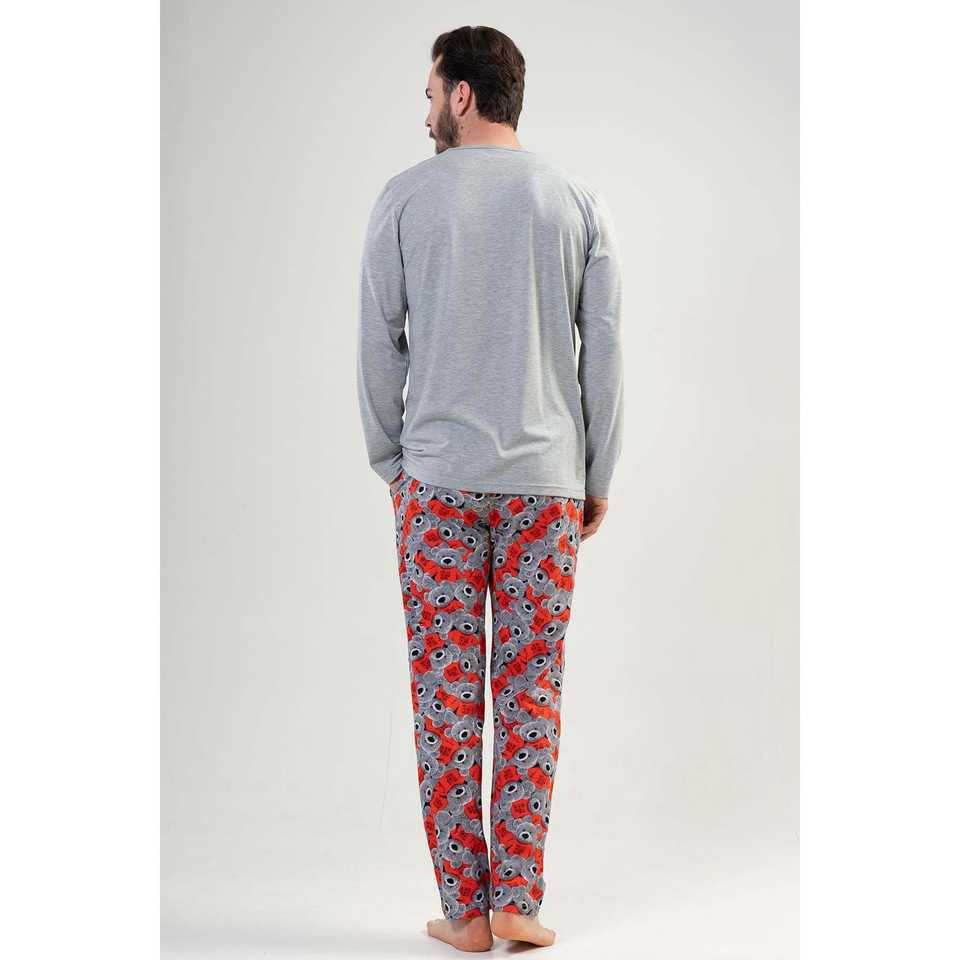 ชุดนอนแขนยาวคอกลมสำหรับผู้ชายพร้อมกระเป๋า ชุดเสื้อและกางเกงใส่สบาย