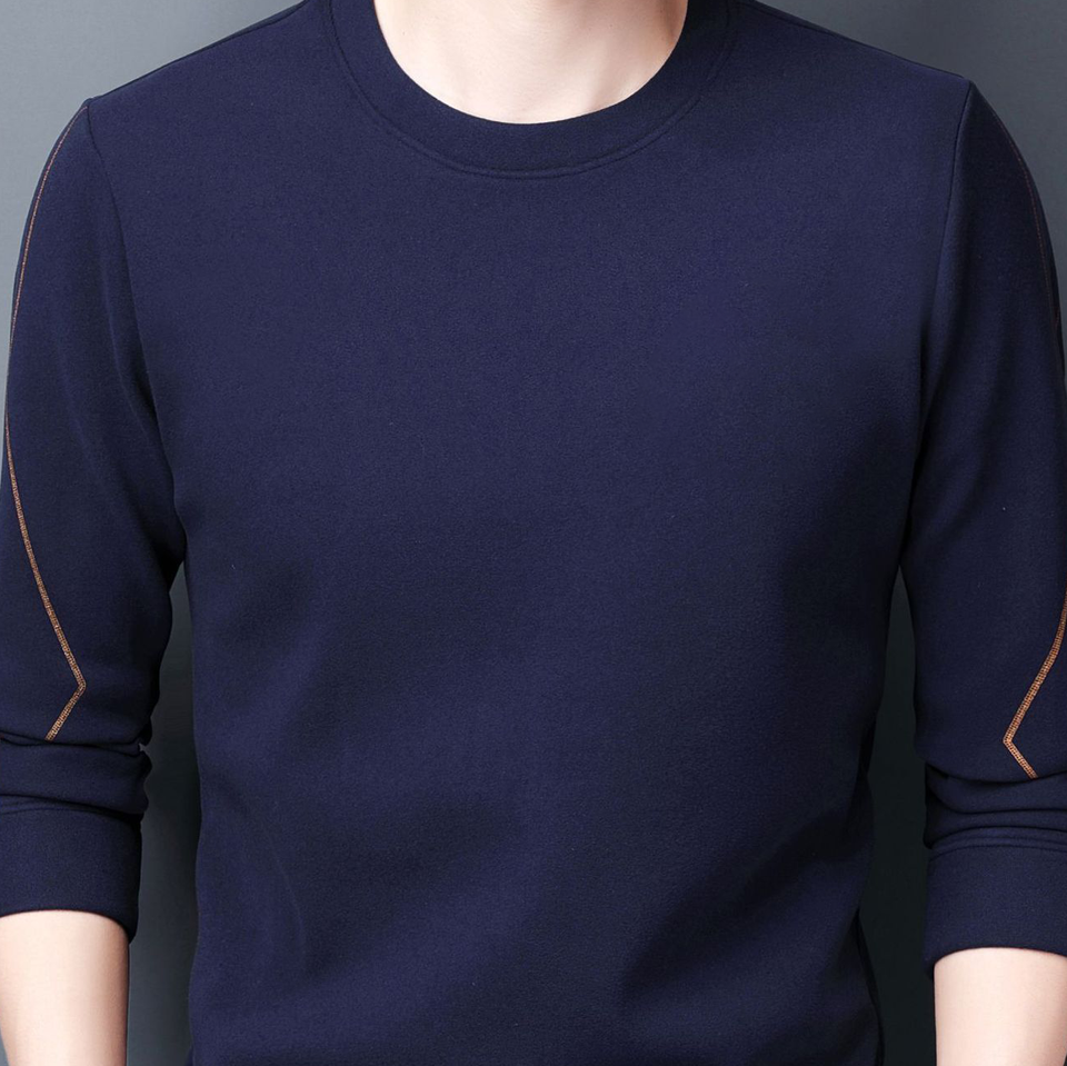 Men's Crew Neck Long Sleeve T-Shirt, Comfortable Solid Color Casual Style