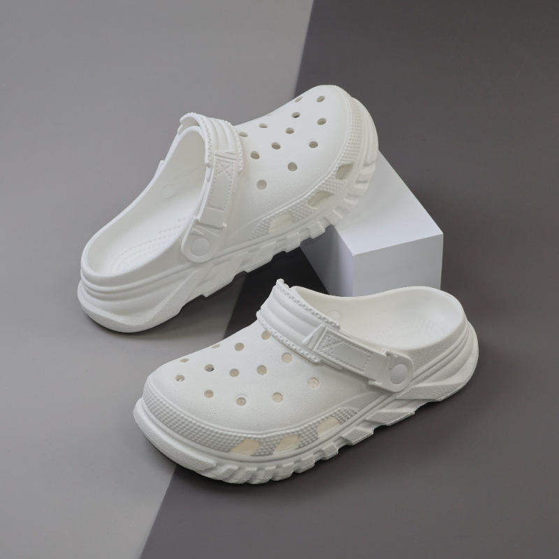 รองเท้าแตะคร็อกส์สำหรับผู้ชาย พื้นหนา ปิดนิ้วเท้า รองเท้าแตะกันลื่น พื้นรองเท้า EVA สำหรับฤดูร้อน รองเท้าลำลองชายหาด ความหนาปานกลาง ส้นสูง 2-3 ซม.