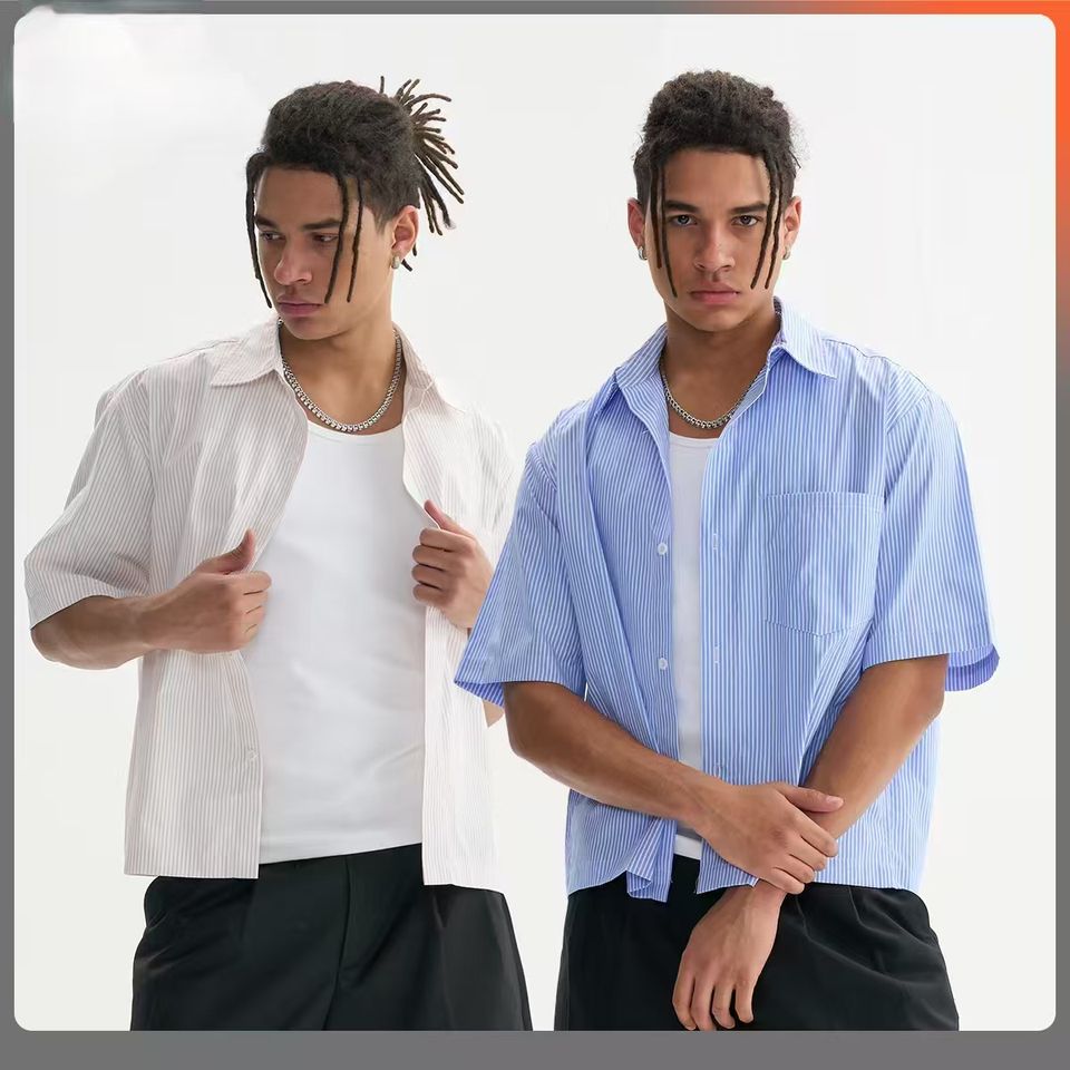 เสื้อเชิ้ตผ้าลินินแบบสั้นสำหรับผู้ชายเสื้อเชิ้ตแบบมีกระดุมสำหรับนักธุรกิจและลำลองผ้าฝ้ายแขนสั้นสำหรับฤดูร้อนแบบทางการลายตารางลายทางสไตล์บ็อกซี่