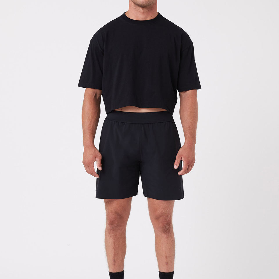 เสื้อยืดครอปแขนสั้นของผู้ชายแห้งเร็วเสื้อผู้ชายสีล้วนล้วนคุณภาพดีเสื้อครอปสตรีท