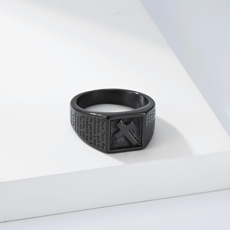 แหวนผู้ชายทรงกากบาท ไทเทเนียมสตีล สีทอง ดำ เงิน แหวนนิ้วชี้ เครื่องประดับ ของขวัญ แฟชั่น รูปทรงเรขาคณิต สไตล์เรโทร สตรีทสไตล์