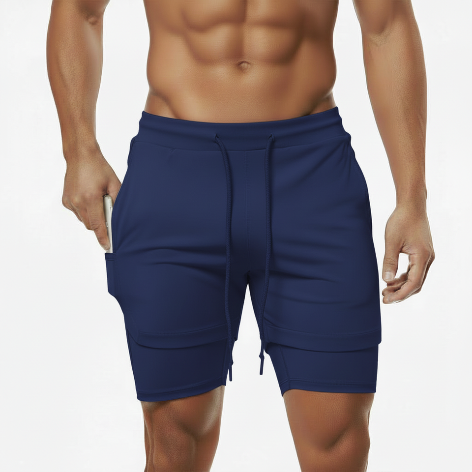 กางเกงวิ่งผู้ชายแบบสั่งทำพิเศษ 2 in 1 กางเกงกีฬาสองชั้น ระบายอากาศได้ดี มีกระเป๋า