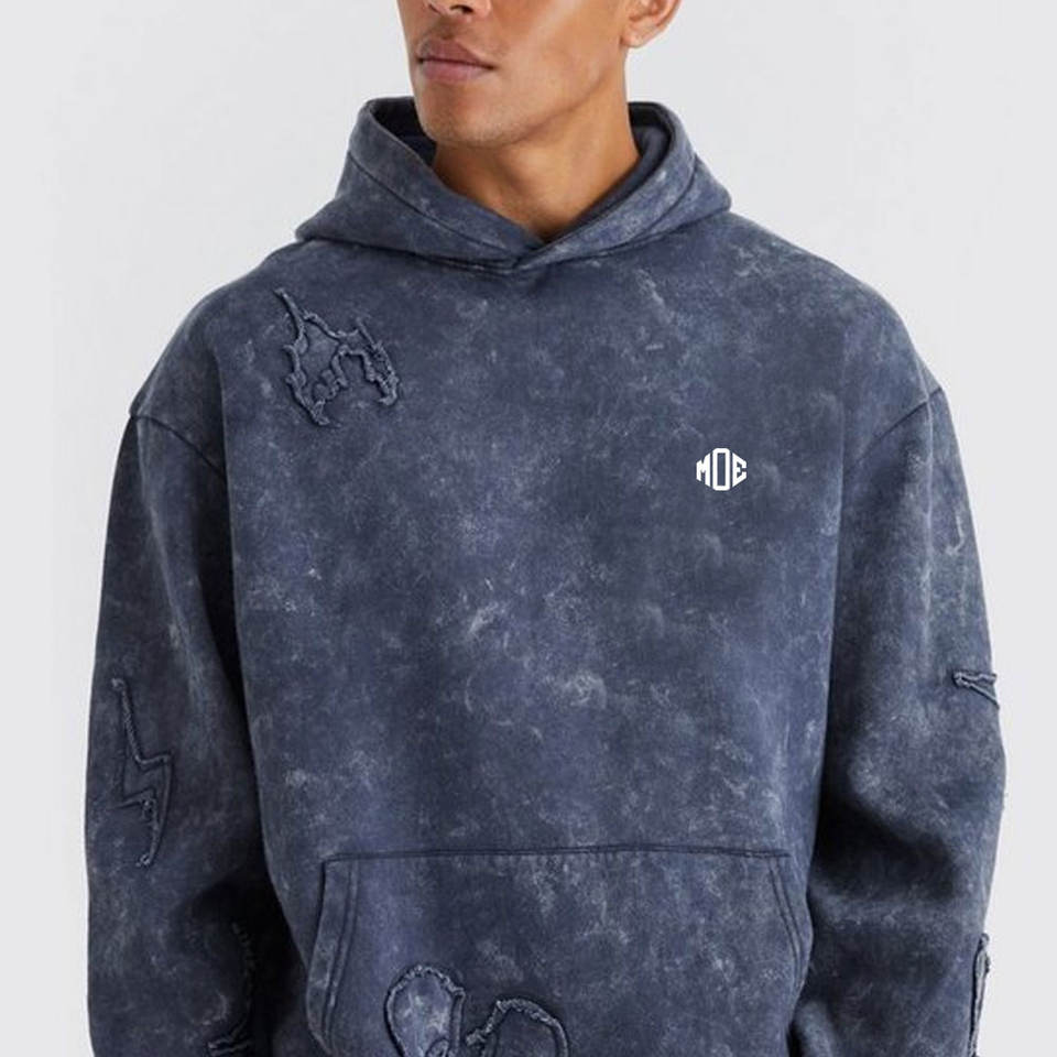 Men's Custom Acid Wash Tracksuit Set Handmade 100% Cotton Sweatpants Hoodies Plus Fleece Winter Breathable Custom Logo High